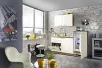barva: magnolija, širina 180 cm, vklj. z vsemi navedenimi inoks električnimi aparati, na voljo v različnih postavitvah in barvnih kombinacijah. Pomivalno korito za doplačilo, 187184/2 gratis aparati: - steklokeramična plošča - 88 cm hladilnik z zamrzovalnim predalom, energijski razred E - pomivalni stroj, energijski razred F
