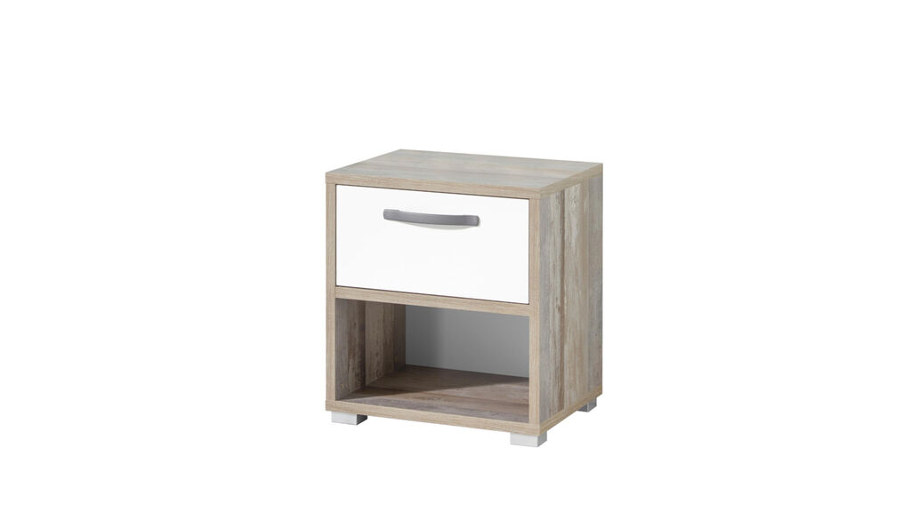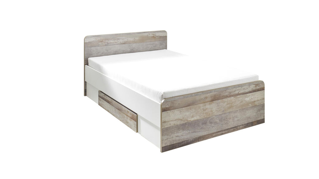 barva: driftwood/belo, sestoji iz: omare, ŠxVxG 138x201x57 cm, postelje 140x200 cm, vklj. s predali, in nočne omarice. Dodatni elementi za doplačilo