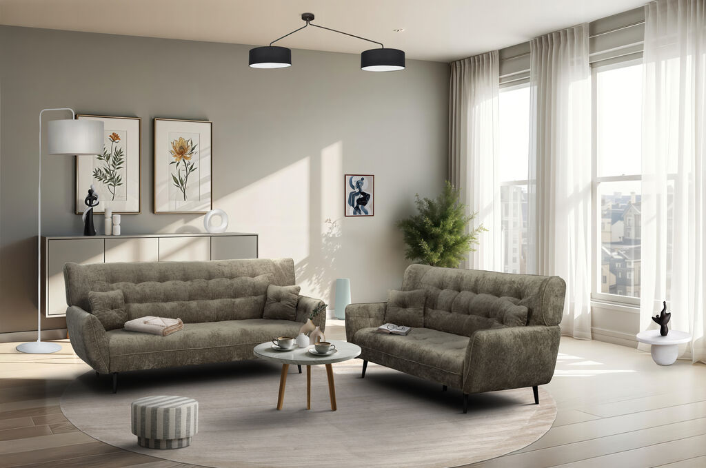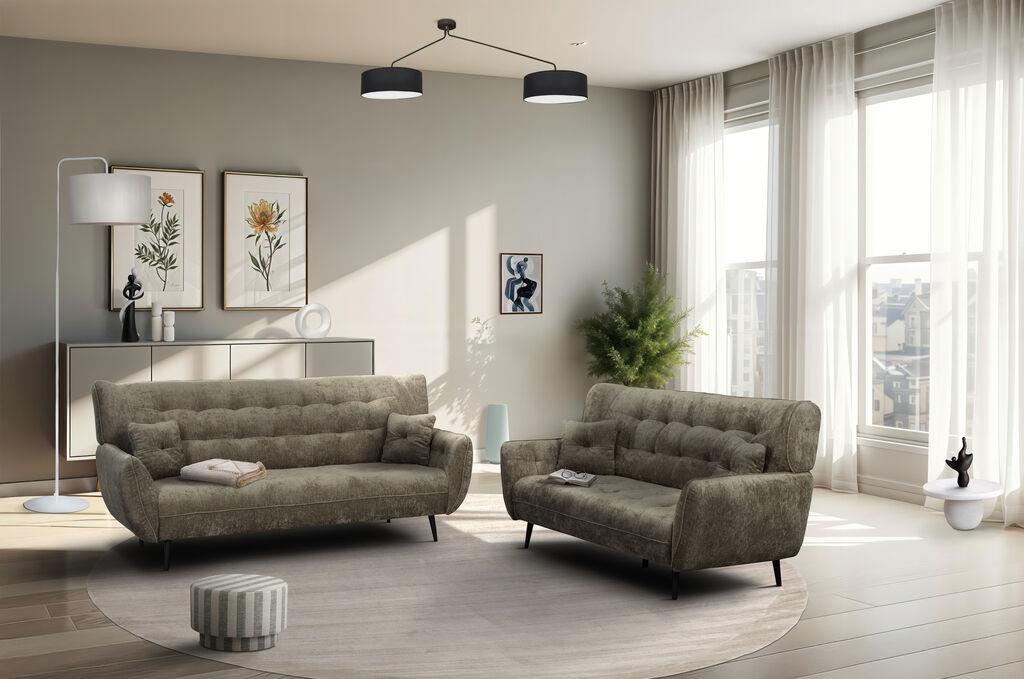 trosed, tkanina, zelena, vklj. 2 okrasne blazine, ŠxVxG: 221x103x100 cm, na voljo v različnih barvah. Dvosed in fotelj za doplačilo