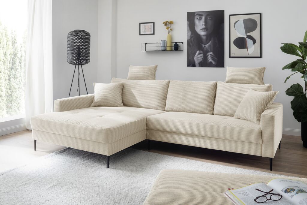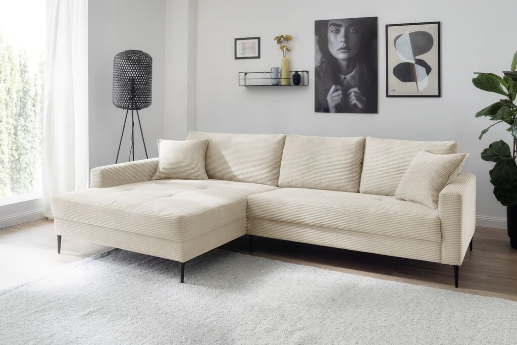 599,00 €tkanina/žamet, naravna barva, vklj. hrbtne blazine, prostorom za shranjevanje in izvlečnim sedežem, mere: 266x150 cm. Okrasne blazine za doplačilo