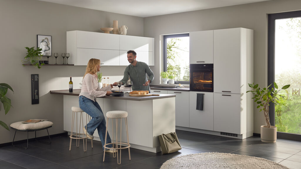 barva: bela, 245 cm x 280 cm + 305 cm, na voljo v različnih postavitvah in barvnih kombinacijah. Vgradni aparati ter pomivalno korito za doplačilo