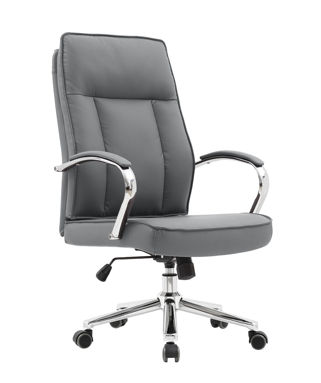 umetno usnje, sivo, kromirano ogrodje, hrbet z nihaljno funkcijo, z nasloni za roke