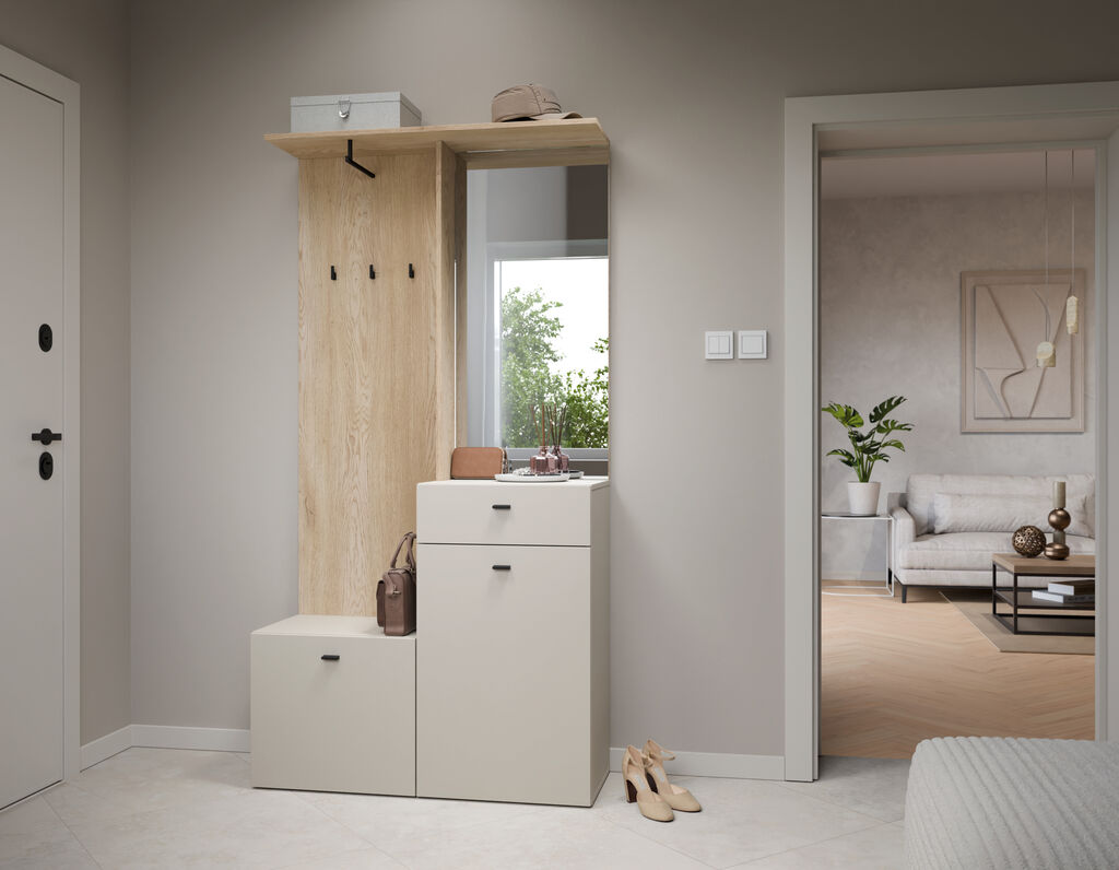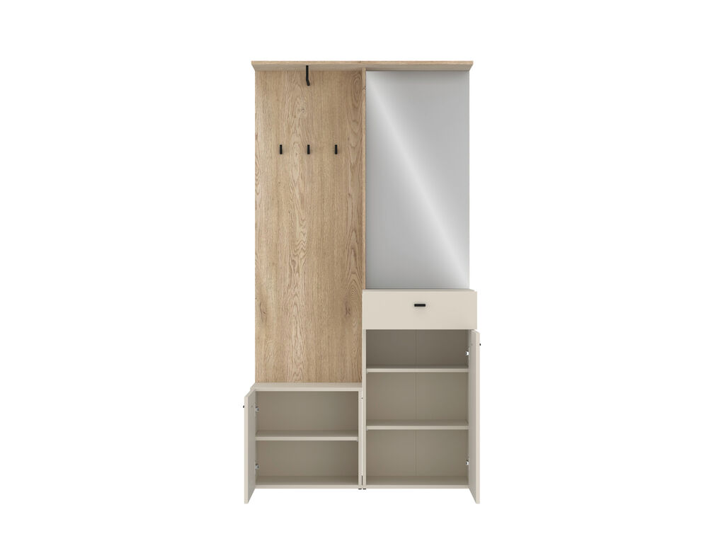 dekor: hrast cremona/ bež, sestavljena iz: omare, panela in ogledala, ŠxVxG: 100x192,1x36,6 cm