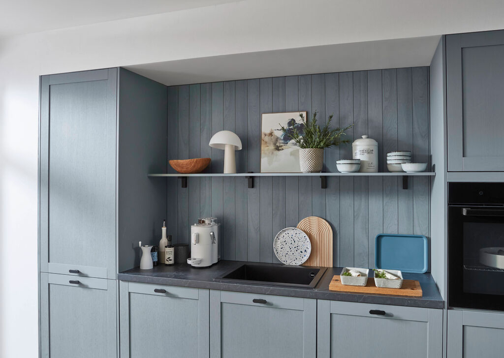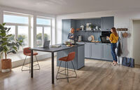 barva: kamneno modra, ca.306+100 cm (dolžina mize 200 cm), vklj. z vsemi navedenimi inoks električnimi aparati, na voljo v različnih postavitvah in barvnih kombinacijah. Pomivalni stroj ter pomivalno korito za doplačilo, 205049