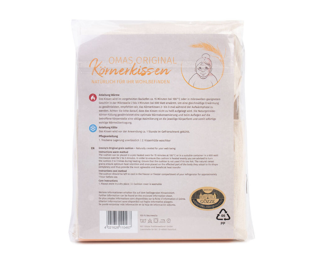 prevleka: 100% bombaž, polnilo: žito, 20x53 cm