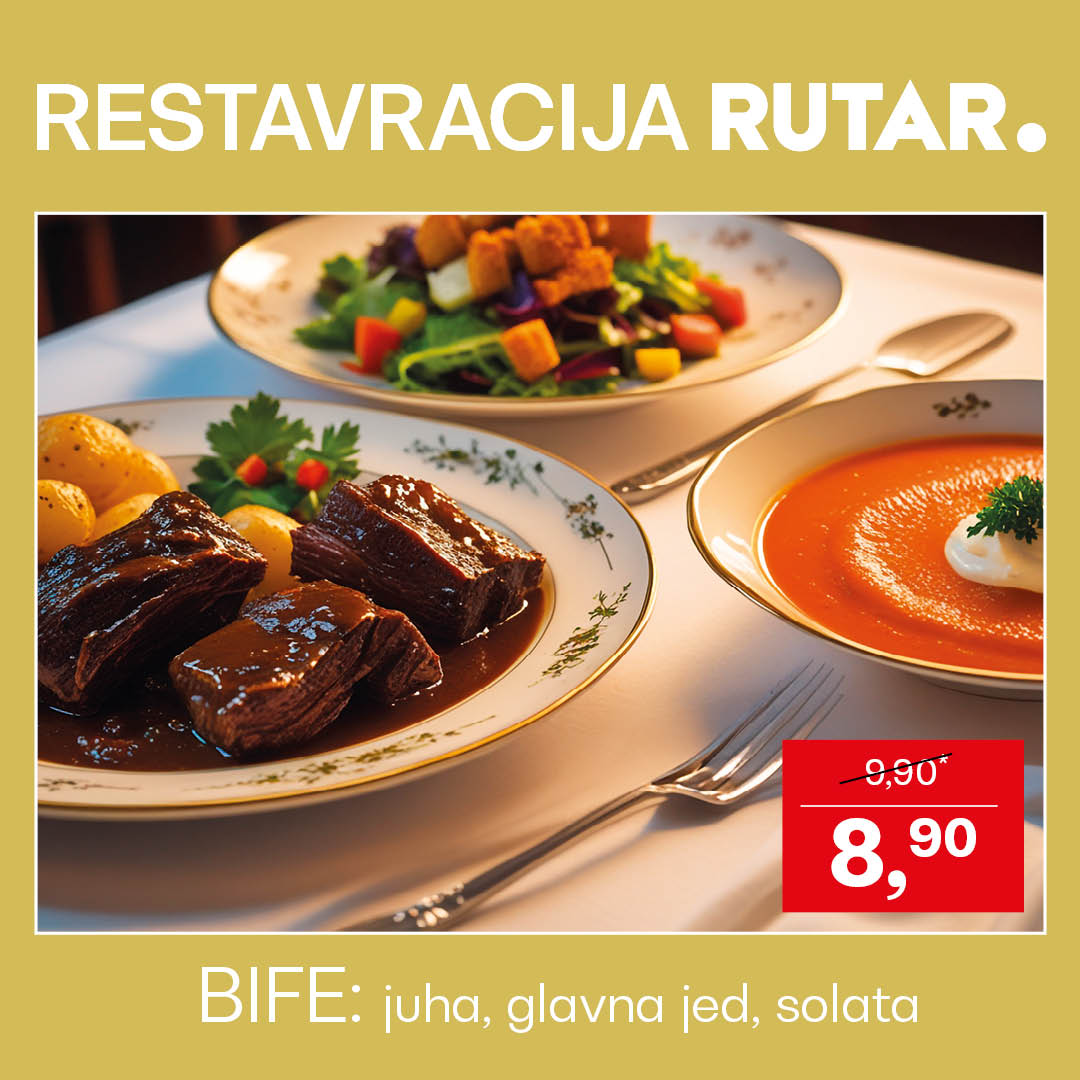 Ponudba v Restavracijah RUTAR je več kot le okusna – je raznolika, premišljena in ustvarjena za vse okuse in priložnosti. Od bogatih zajtrkov in svežih solat do slastnih pizz, klasičnih mesnih jedi, ribjih specialitet in nepogrešljivih sladic – vsak krožnik nosi pečat kakovosti in domačnosti.